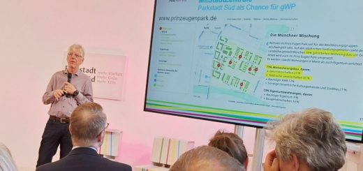 Wie die Kölner Wohnungsbaugesellschaft GAG gemeinschaftliches Wohnen umsetzt, zeigte Sabine Seitz, Referentin für neue Wohnformen, anhand von drei aktuellen Beispielen: Das gemeinschaftliche Miet-Wohnprojekt Futur3 in Kalk, eine Demenzwohngruppe in Humboldt-Gremberg und Inklusiv-Wohnen im Sürther Feld. Mit dabei waren Mitarbeitende des städtischen Büros für gemeinschaftliche Wohnbauprojekte, der Entwicklungsgesellschaft moderne stadt und der MitStadtZentrale.
